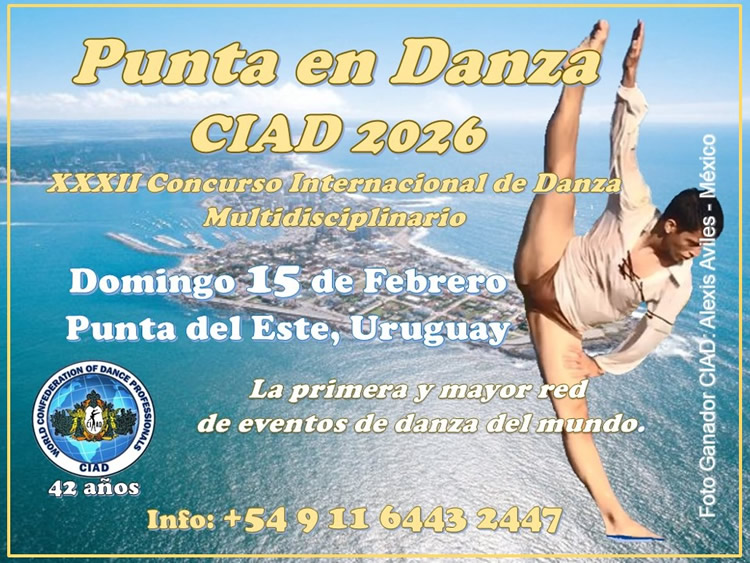 15 de Febrero de 2026 PUNTA EN DANZA XXXII CONCURSO INTERNACIONAL DE DANZA – Multidisciplinario Teatro Fernandino - Dirección: 25 de Mayo casi 18 de Julio