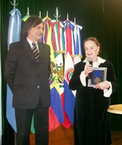 siendo homenajeada por el Pdte. CIAD Prof. Rodolfo Solmoirago.